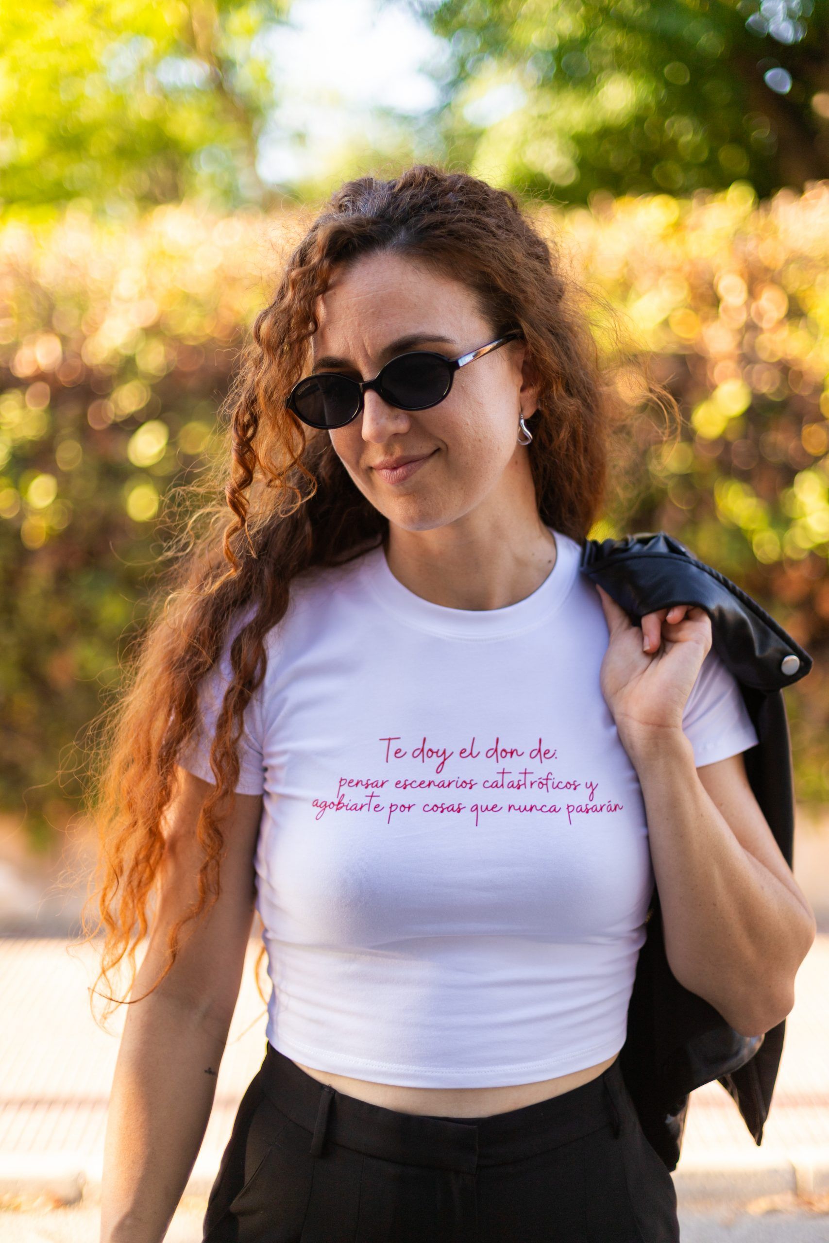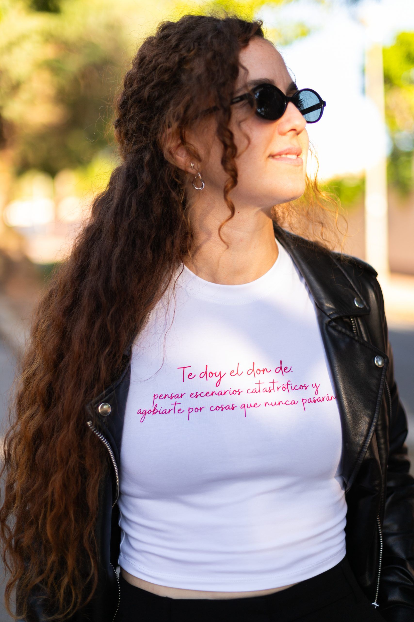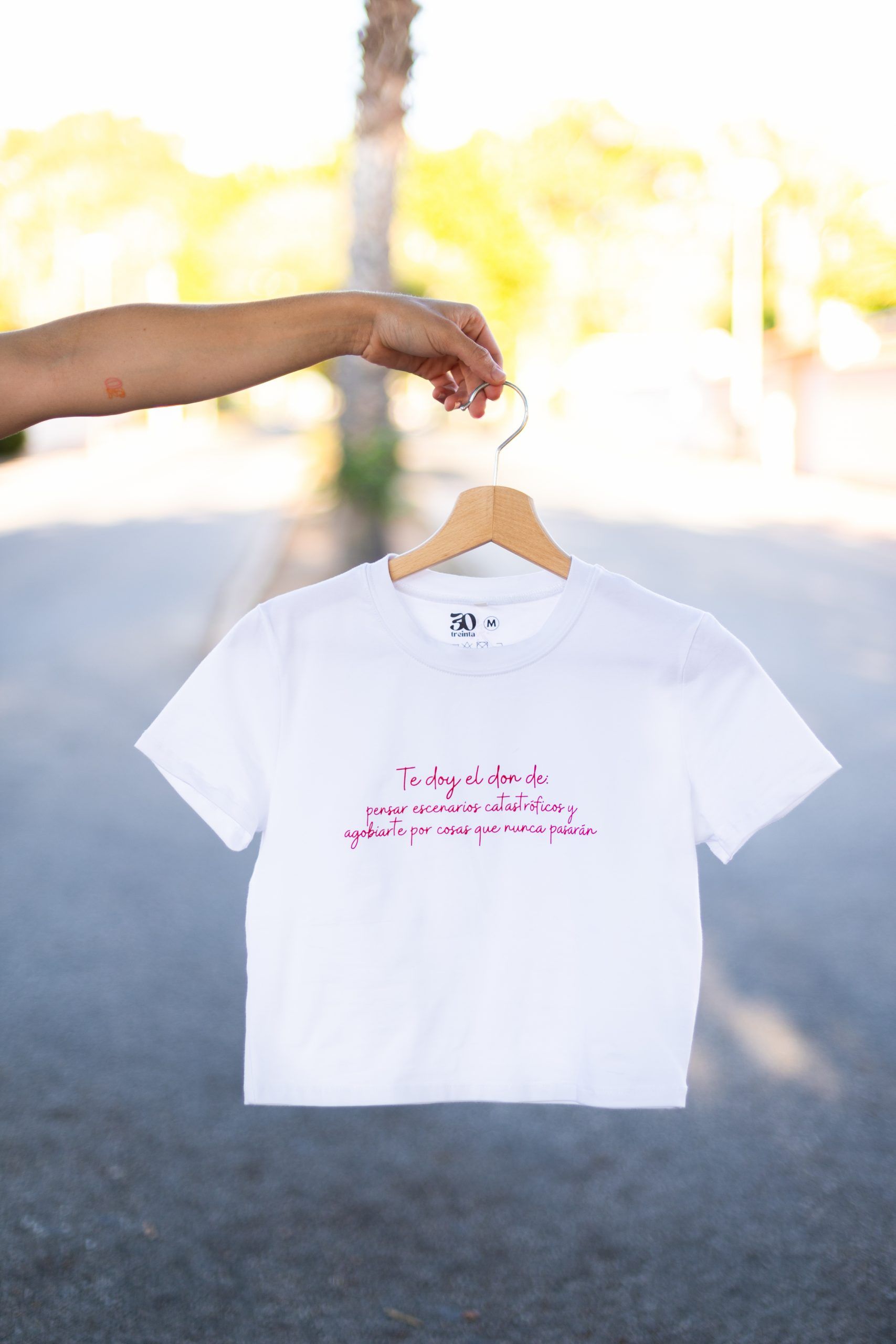 Para esos días en los que nada sale como esperabas, pero aún así sigues adelante. Crop top de algodón blanco, suave y cómodo, con el mensaje “Lo estás haciendo horrible, pero no te rindas”. Porque la actitud lo es todo.